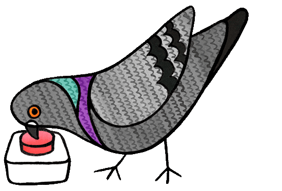Lucy, why is there a pigeon pushing a button on your homepage?